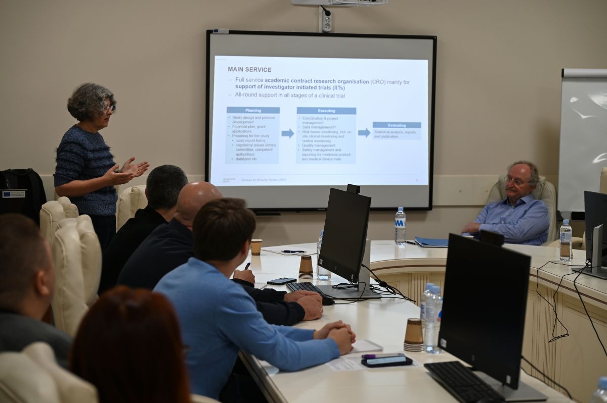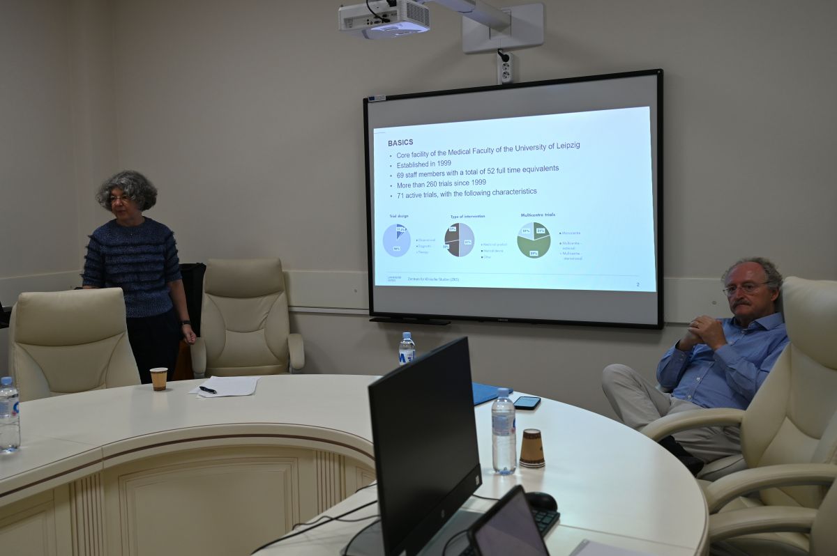 Agenda de lucru a experților germani a inclus și o vizită de documentare în laboratoarele de cercetare din Blocul didactic nr. 1 „Leonid Cobâleanschi”, fiind ghidați de către profesorii Mihail Todiraș, șeful Centrului de cercetare în domeniul sănătății și biomedicinei, și Olga Tagadiuc, șefa Centrului de medicină moleculară, care au prezentat facilitățile științifice și oportunitățile de colaborare în domeniul cercetării biomedicale.